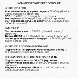 Мы - консалтинговая компания, специализирующаяся на предоставлении инженерно-технических услуг в области строительства объектов промышленного и гражданского назначения. Занимаемся сопровождением строительства объектов любой сложности.Выполняемые работы